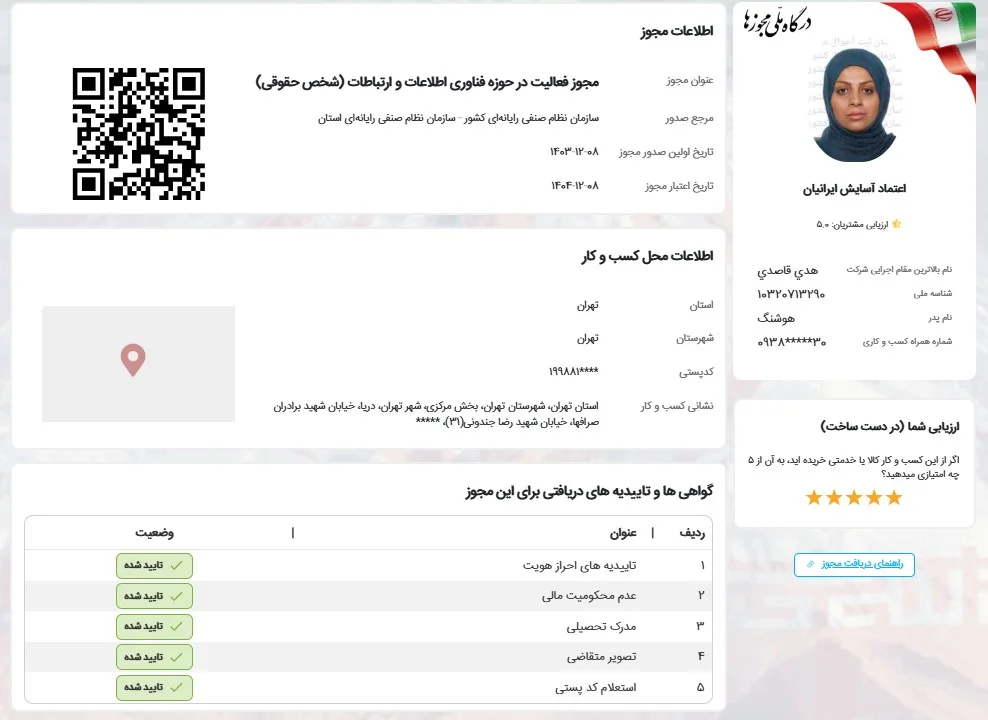 مجوز فعالیت از سازمان نظام صنفی رایانه ای استان تهران